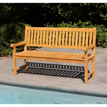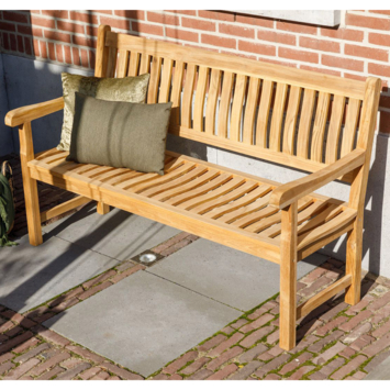 Met een breedte van 151 cm, een diepte van 57 cm en een hoogte van 95 cm biedt deze tuinbank een comfortabele zitplek voor drie personen. De zithoogte van 44 cm en de ergonomische rugleuning zorgen voor een prettige zithouding. De armleuningen geven extra steun, waardoor je langdurig comfortabel kunt zitten. Hoewel teakhout goed bestand is tegen weersinvloeden, kan het door regen en zon verkleuren. Om de warme houtkleur te behouden, adviseren we een teak sealer te gebruiken. Dit voorkomt snelle veroudering en beschermt tegen vocht en UV-straling.