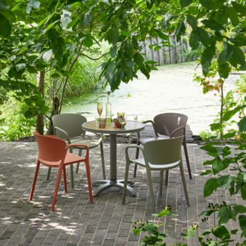 Met een zithoogte van 44 cm en een ergonomisch gevormde rugleuning biedt Bent een comfortabele zitervaring. De stoel heeft een hoogte van 75 cm, een breedte van 57 cm en een diepte van 56 cm, waardoor hij perfect past bij verschillende tafels en buitenopstellingen. De maximale draagkracht van 150 kg en de stevige constructie maken de stoel geschikt voor dagelijks gebruik. Extra praktisch is dat hij stapelbaar is, waardoor hij eenvoudig op te bergen is.