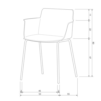 De stoel heeft een hoogte van 80 cm, een breedte van 53 cm en een diepte van 55 cm. De zithoogte van 45 cm en zitdiepte van 43 cm zorgen voor een ergonomische zitervaring. Polypropyleen is een lichte maar sterke kunststof, die eenvoudig te reinigen is en goed bestand is tegen vocht. Om de stoel in topconditie te houden, raden we aan hem te beschermen tegen regen en vorst door hem af te dekken of binnenshuis te bewaren in de winter.