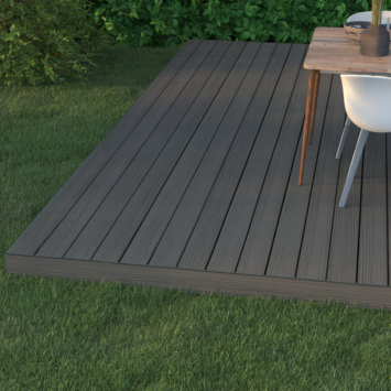 De vlonderplanken zijn volledig gemaakt van gerecyclede grondstoffen. Daarmee kies je voor een materiaal dat geschikt is voor langdurig gebruik in de tuin of op het balkon.