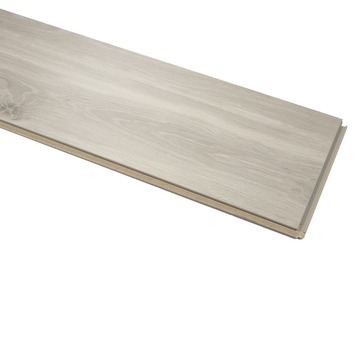 Het XXL laminaat licht eiken met V-groef 8 mm 2,44 m² heeft een voelbare houtstructuur en een moderne uitstraling. Het extra lange laminaat is 1 meter langer dan gewoon laminaat. De vloer heeft een klikverbinding waardoor het leggen van het laminaat eenvoudig gaat en een naadloos effect heeft. Daarnaast kan je de vloer zwevend leggen waardoor deze niet aan de ondervloer hoeft te worden gelijmd. Laminaat is zeer onderhoudsvriendelijk omdat het eenvoudig te reinigen is. Dit kliklaminaat is geschikt voor intensief en normaal woongebruik.
