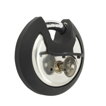 Yale 70 mm roestvrij stalen discusslot met gesloten beugel, behuizing in zeewaterbestendig roestvrij staal met zacht rubberen bescherming tegen beschadigingen. Sleutel blijft vastzitten wanneer slot geopend is. Door de ingesloten beugel beperkt toegang tot de beugel bij een aanval op de beugel. Inclusief 3 sleutels. Type Y130B/70/116/1