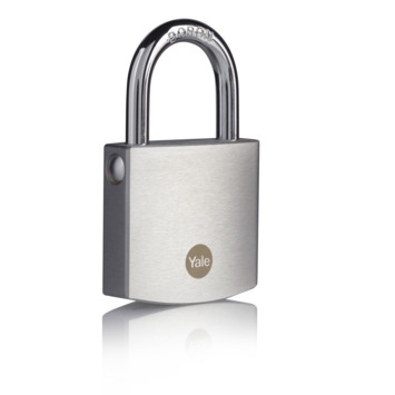 Yale 50 mm Messing hangslot mat chroom finish met verharde stalen beugel. Sluiten door dicht te klikken en te openen met sleutel. Dubbel vergrendelingsmechanisme voor extra veiligheid. Inclusief 3 sleutels.