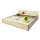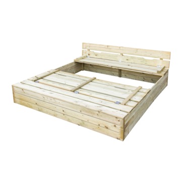 De zandbak XL is 160 op 160 centimeter groot en 25 centimeter hoog. Hj bestaat uit een bak met een dubbel deksel dat je kan openklappen en omvormen tot 2 comfortabele zitjes voor de kids. Kortom: twee-voor-de-prijs-van-één! Gemaakt uit geïmpregneerd grenen.