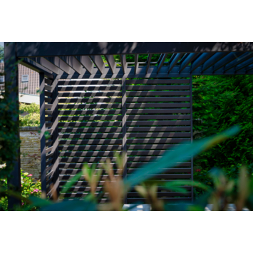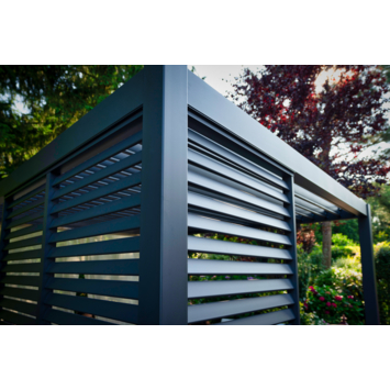 Ons lamellenzijpaneel voor de Classic en Deluxe pergola is een functionele en stijlvolle oplossing om de zijkanten van uw pergola af te sluiten. Het paneel bestaat uit vaste lamellen, waarmee je stijlvol extra privacy en beschutting creëert. De lamellen zijn gemaakt van aluminium, waardoor ze bestand zijn tegen verschillende weersomstandigheden en lang meegaan. Bovendien biedt de lamellenstructuur voldoende ventilatie om een briesje door te laten, zodat u kunt genieten van frisse lucht terwijl u beschermd bent tegen de zon en harde wind. Het paneel is verkrijgbaar in verschillende maten om te passen bij uw pergola en wordt geleverd met alle benodigde bevestigingsmiddelen voor een snelle installatie. Voor optimale bescherming en privacy kunt u de gehele zijkant dichtmaken. Maar, u kunt de panelen ook in een hoek plaatsen. Indien u de gehele zijkant wilt dichtmaken, heeft u 3 panelen nodig. Met de lamellenzijpanelen maakt u van uw pergola een praktische en comfortabele buitenruimte waar u het hele jaar door van kunt genieten.