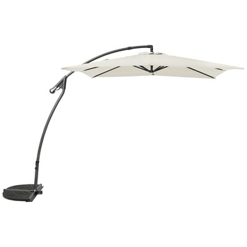 De Zweefparasol 250x250cm vierkant ecru is een mooi zweefparasol voor in uw tuin. Met afmetingen van 250x250 cm wordt een ruim oppervlak beschermd tegen de zon. De parasol is gemaakt van aluminium en polyester met een strak design. Deze Zweefparasol 250x250cm vierkant ecru is ecru van kleur. Bovendien is de parasol in hoogte verstelbaar en draaibaar, zodat u zelf de gewenste stand kan bepalen. Kortom, heerlijk genieten in de tuin bij aanschaf van de Zweefparasol 250x250cm vierkant ecru.