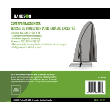 De kortgeleden aangeschafte zweefparasolhoes voldoet op alle punten aan de verwachtingen.