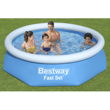 Met dit zwembad staat er binnen tien minuten een waar waterparadijs. Met een diameter van 244cm kan met meerdere personen afkoelen in dit zwembad. De opbaasbare rand is 61cm hoog, is UV-werend en kan tegen een stootje. Door de opblaasbare rand is dit zwembad gemakkelijk op te zetten en weer op te bergen. Dit zwembad is geschikt voor de Bestway® filter pompen, welke apart verkrijgbaar zijn. Reparatiesetje is inbegrepen.