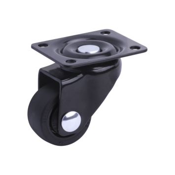 Dit zwarte zwenkwiel met plaat is gemaakt van TPE, waardoor het te gebruiken is op vele vloersoorten (waaronder tapijt, pvc, linoleum, laminaat en tegels). Het maximale draagvermogen is 13 kilogram. Het wiel is 25x13mm en de plaat is 30x40mm. De hoogte is 39mm. Het wiel is voorzien van een enkele kogellager. Ook verkrijgbaar met rem en als bokwiel.