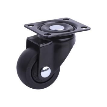 Dit zwarte zwenkwiel met plaat is gemaakt van TPE, waardoor het te gebruiken is op vele vloersoorten (waaronder tapijt, pvc, linoleum, laminaat en tegels). Het maximale draagvermogen is 23 kilogram. Het wiel is 38x17mm en de plaat is 35x45mm. De hoogte is 53mm. Het wiel is voorzien van een enkele kogellager. Ook verkrijgbaar met rem en als bokwiel.