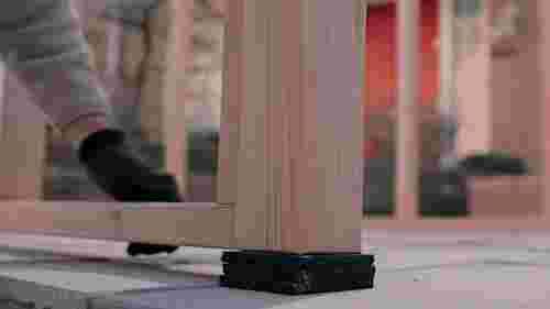 Bevestig vervolgens twee staanders aan de buitenzijde van twee frames. Houd daarbij rekening met de dikte van de rabatdelen. Het mooist is het, als die tussen de staanders vallen.