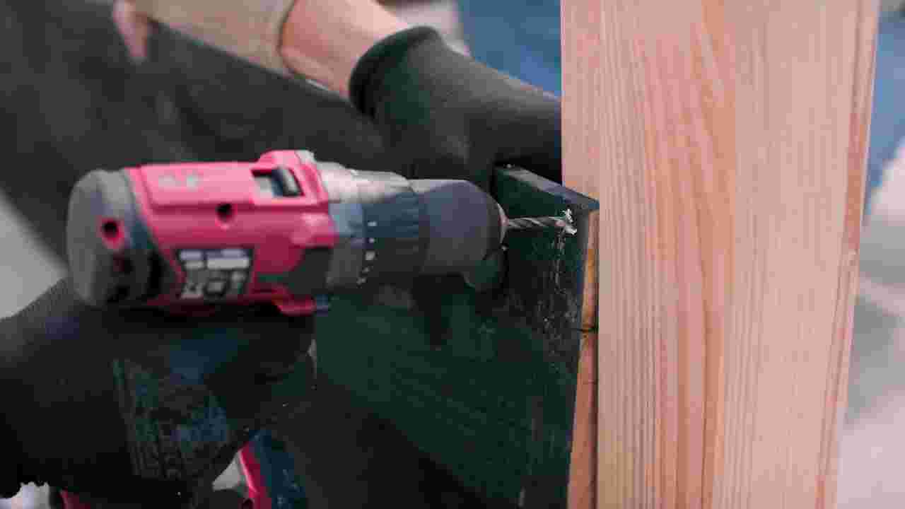 - Verzink de schroeven in het houtoppervlak met behulp van een verzinkboortje.