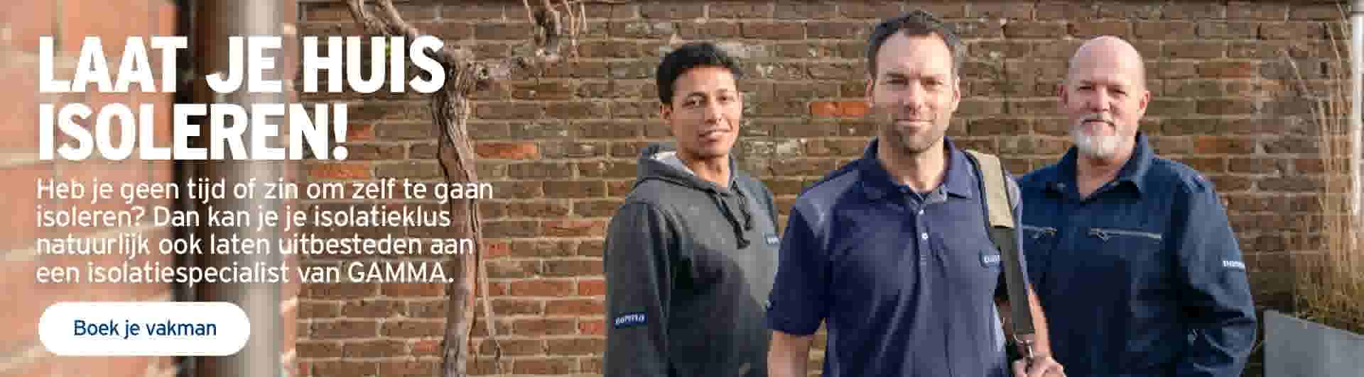 Voor bepaalde isolatieklussen is vakkennis, specialistisch gereedschap en materiaal benodigd. Wil je niet zelf de isolatieklus uitvoeren, maar wel besparen op je energierekening en tegelijkertijd bijdragen aan een duurzamere wereld? Je kunt jouw isolatieklus overlaten aan een isolatie specialist via de GAMMA Klusservice. Onze kluspartner bieden een uitgebreid isolatie-adviesgesprek aan en helpen jou bij het optimaal isoleren va je woning.
